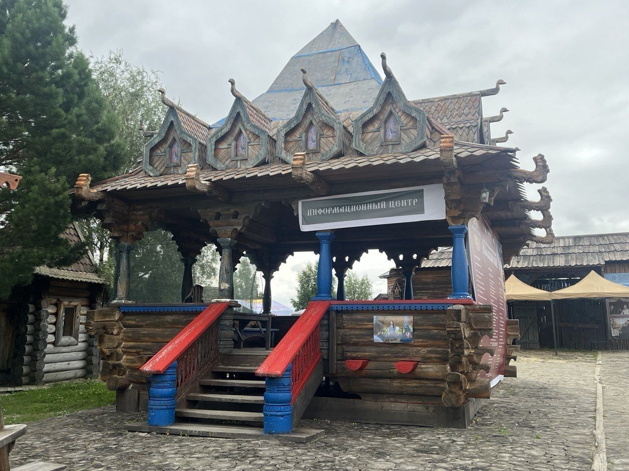 В этом туркомплексе снимали многие важные сцены сказки «По щучьему велению» (6+) с Никитой Кологривым в главной роли, поэтому там осталась часть декораций: царская беседка, волшебный колодец и печь, на которой гонял Емеля.
