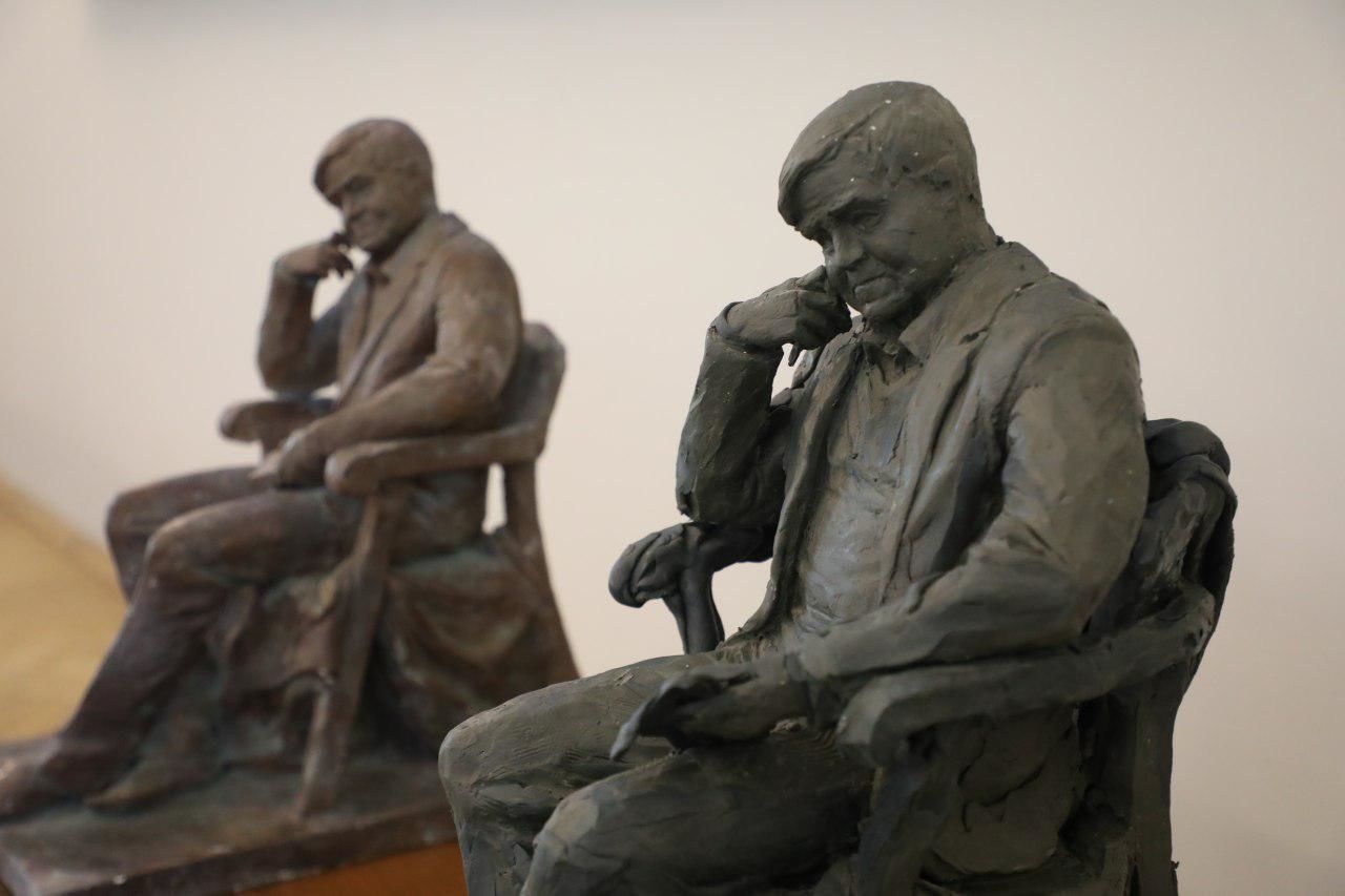 В итоговом варианте костюм на писателе решили расстегнуть, а шрифт немного изменили. Уже через неделю фигуру отправят на формовку, а сейчас скульптор работает над деталями проекта.