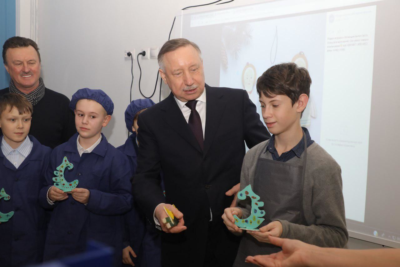 Добавим, что губернатор посетил также школьные уроки. Дети подарили главе Петербурга самодельную игрушку, а он преподнес школе шлифовальный станок.