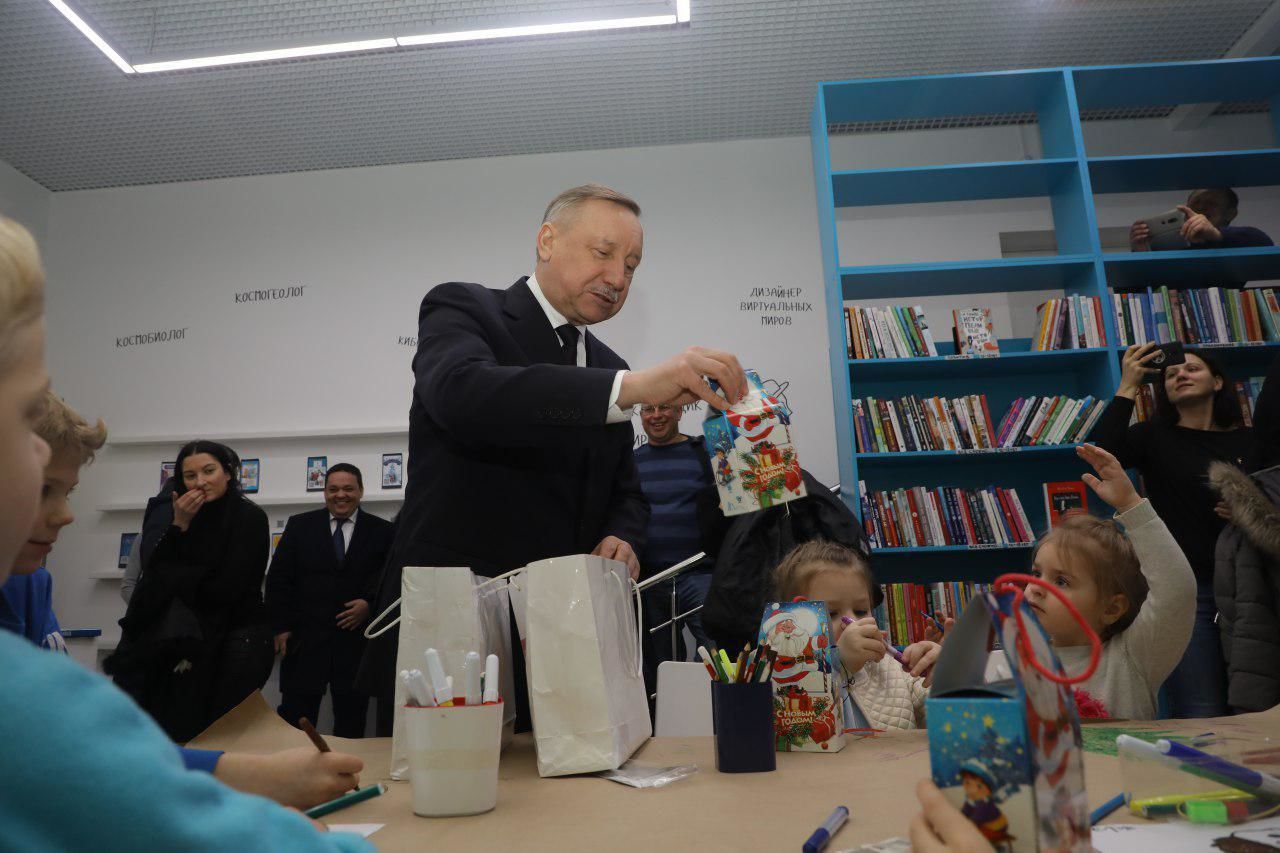После этого губернатор посетил Библиотеку роста и карьеры на Московском проспекте, 150. Компанию ему составил Виталий Милонов, депутат Госдумы. Там они посетили мастер-класс для юных петербуржцев. Дети подарили губернатору Александру Беглову самодельную елку.