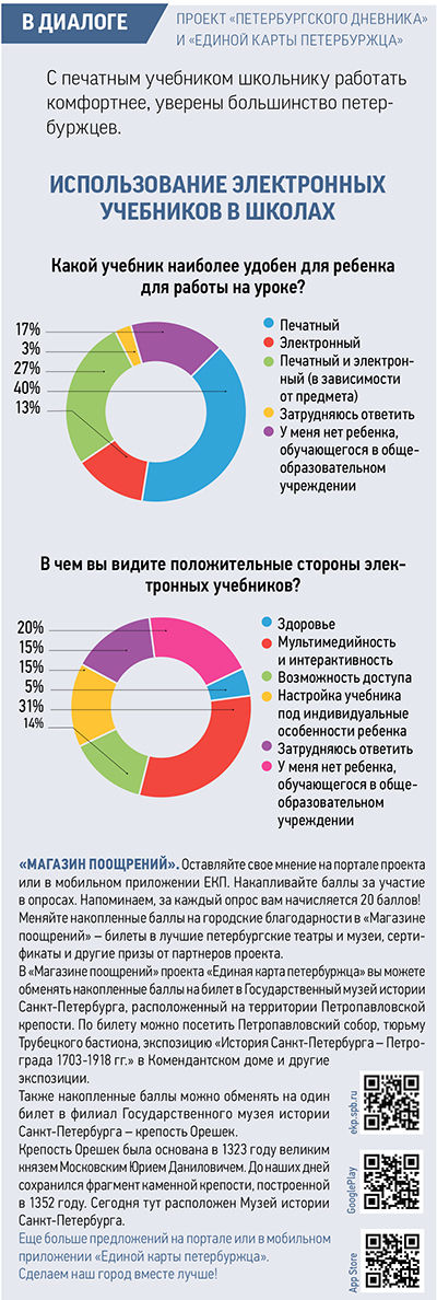 Большинство петербуржцев считают бумажные учебники более удобными для школьников
