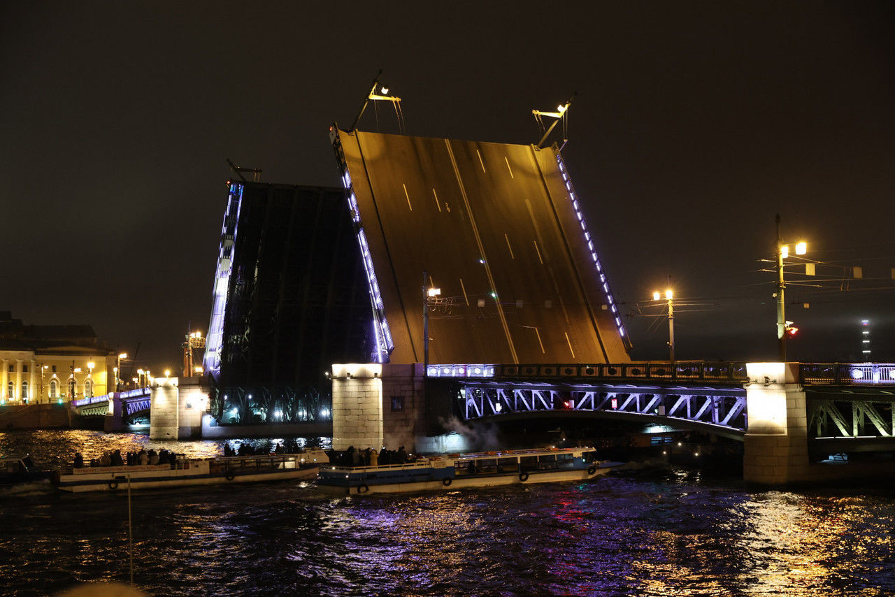 В ночь на 30 марта разведут пять мостов: мост Александра Невского (с 02:20 до 05:10), Троицкий мост (с 01:20 до 04:50), Дворцовый мост (с 01:10 до 04:55), Тучков мост (с 02:00 до 04:55) и Кантемировский мост (01:30 до 04:30).
