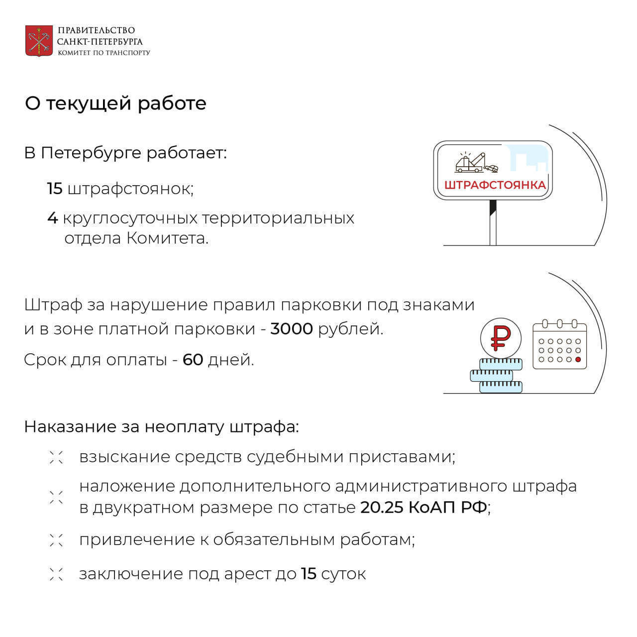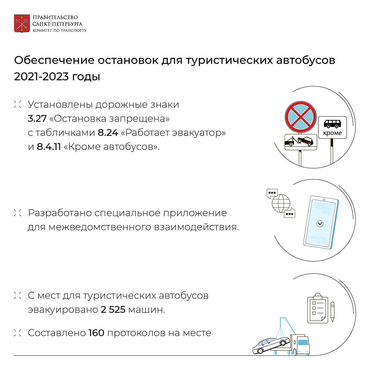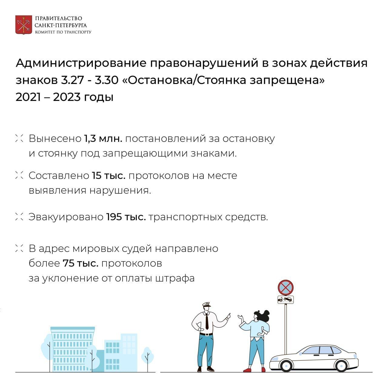 В Петербурге подвели итоги двухлетней работы Комитета по транспорту по контролю соблюдения правил парковки в зонах действия дорожных знаков «Остановка/Стоянка запрещена» с дополнительной табличкой «Работает эвакуатор», сообщили сегодня в пресс-службе комитета.
