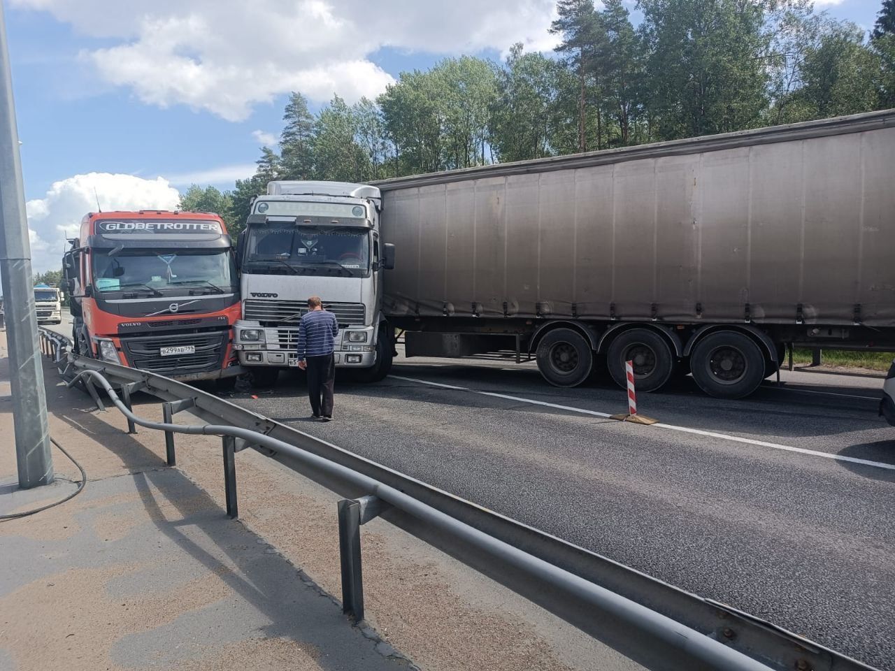 Движение на КАД перекрыто из-за ДТП с двумя грузовиками