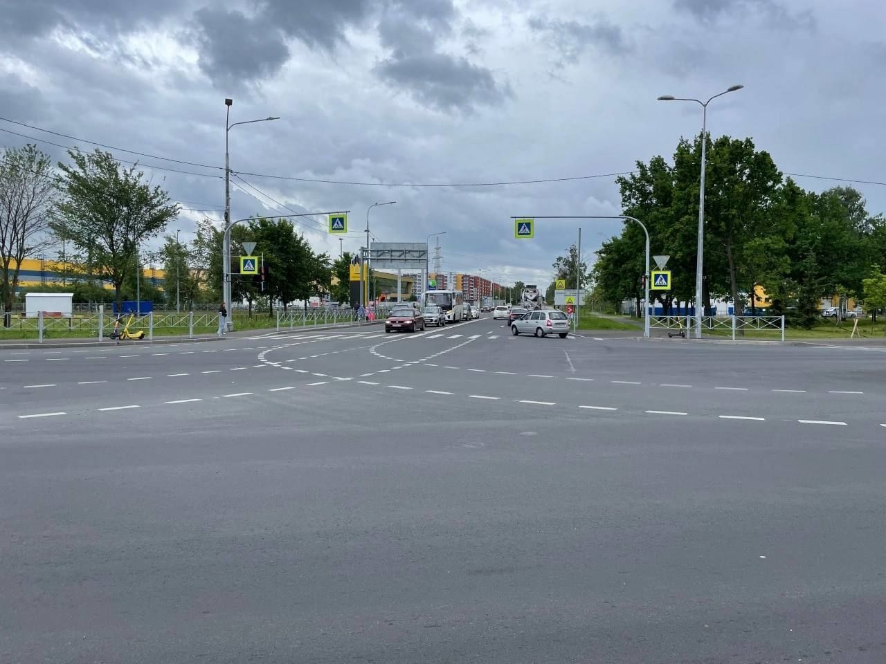 В Петербурге сделали удобным для пешеходов и транспорта перекресток Петергофского и Буденного