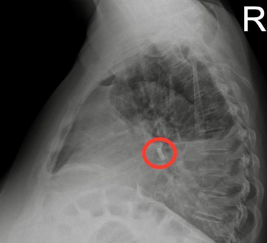 Как оказалось, около года назад женщина во сне вдохнула часть зубного протеза, не заметив этого, а впоследствии решила, что протез потеряла.