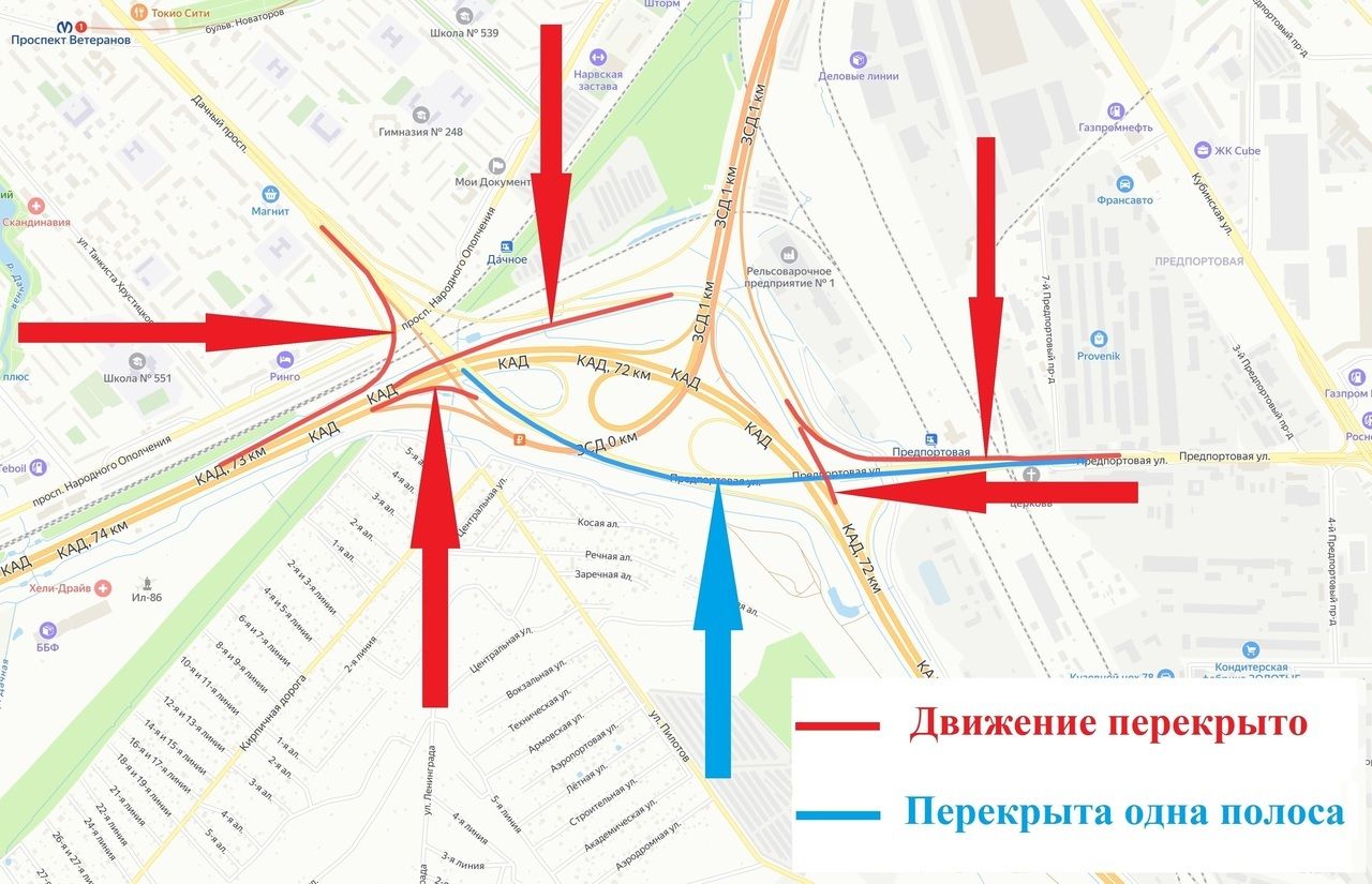 На развязке КАД с ЗСД и Дачным проспектом полностью перекроют пять съездов