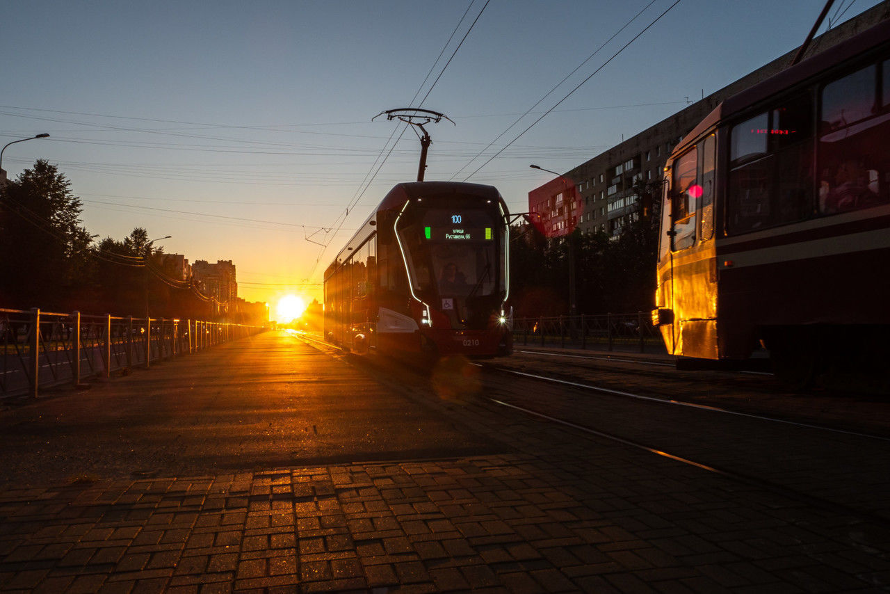 Трамвай №100 отправится от конечной станции «Придорожная аллея» по проспекту Энгельса, проспекту Луначарского, проспекту Культуры, проспекту Просвещения, улице Руставели до конечной станции «Совмещенный трамвайно-троллейбусный парк».
