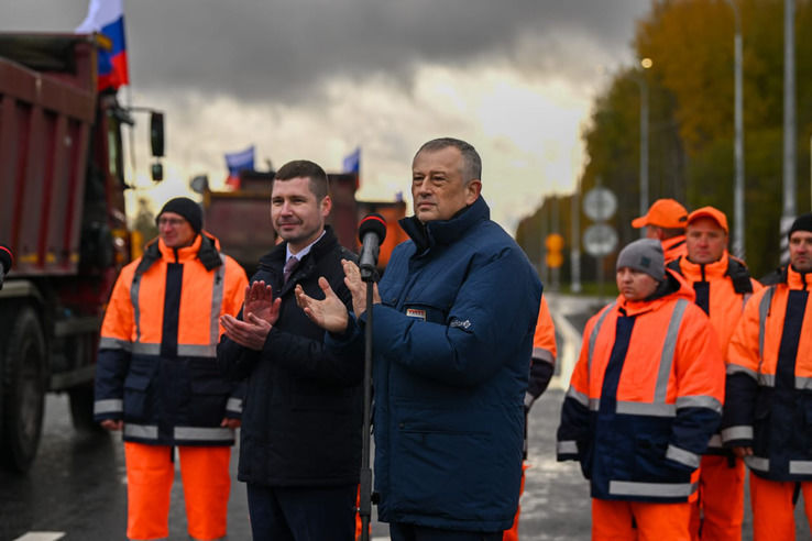 Вице-премьер дал старт одновременно двум объектам: участку федеральной трассы в Ленобласти и первому участку Малого транспортного кольца в Вологодской области.
