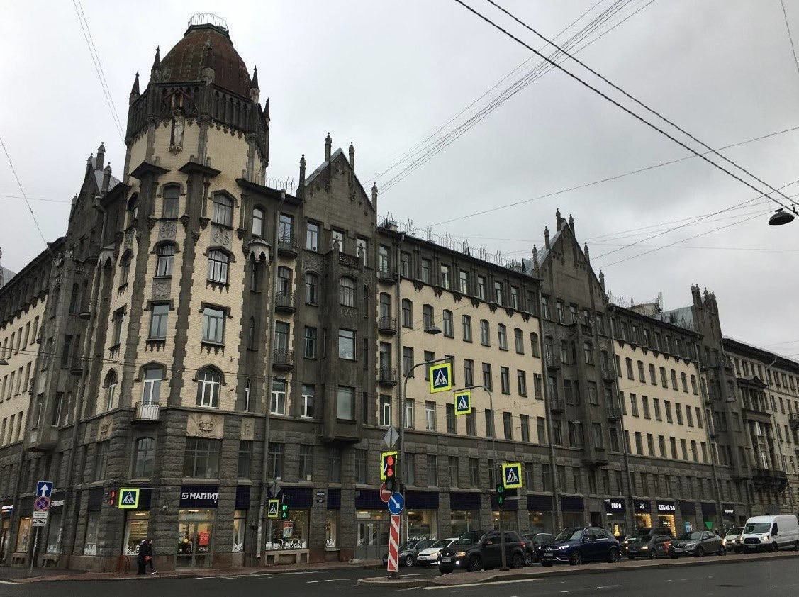 «В оформлении фасадов архитектор совместил мотивы модерна и средневекового зодчества, украсив их остроконечными «готическими» щипцами и доминирующей над окружающей застройкой башней с лантерной, скульптурой жницы с серпом в нише», – рассказали в КГИОП.