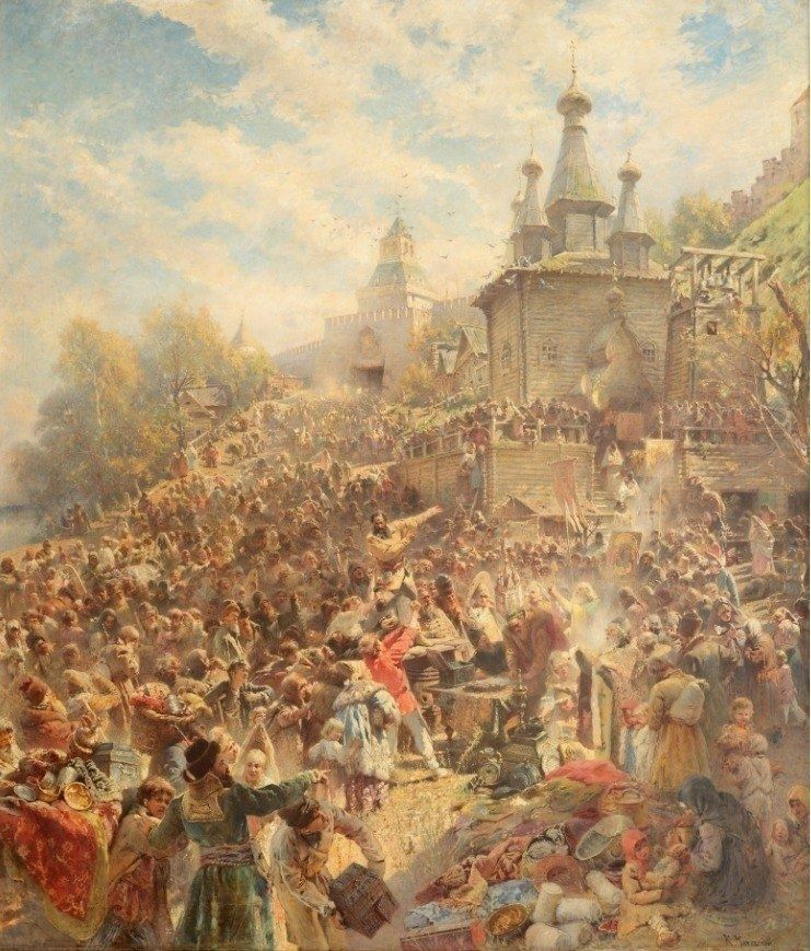 Маковский К.Е. Минин на площади Нижнего Новгорода, призывающий народ к пожертвованиям. 1894-1896;
