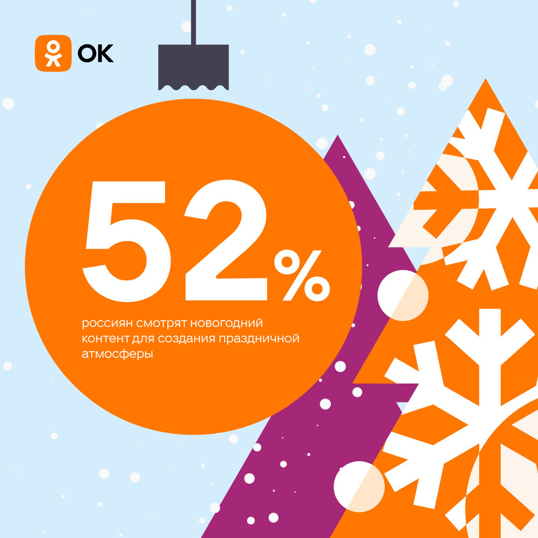 По данным соцсети «Одноклассники», в декабре текущего года особенно выросло количество новогоднего контента. Доля публикаций про праздник составила более 50% от всех постов в ленте, что почти на 35% больше, чем в прошлом году.