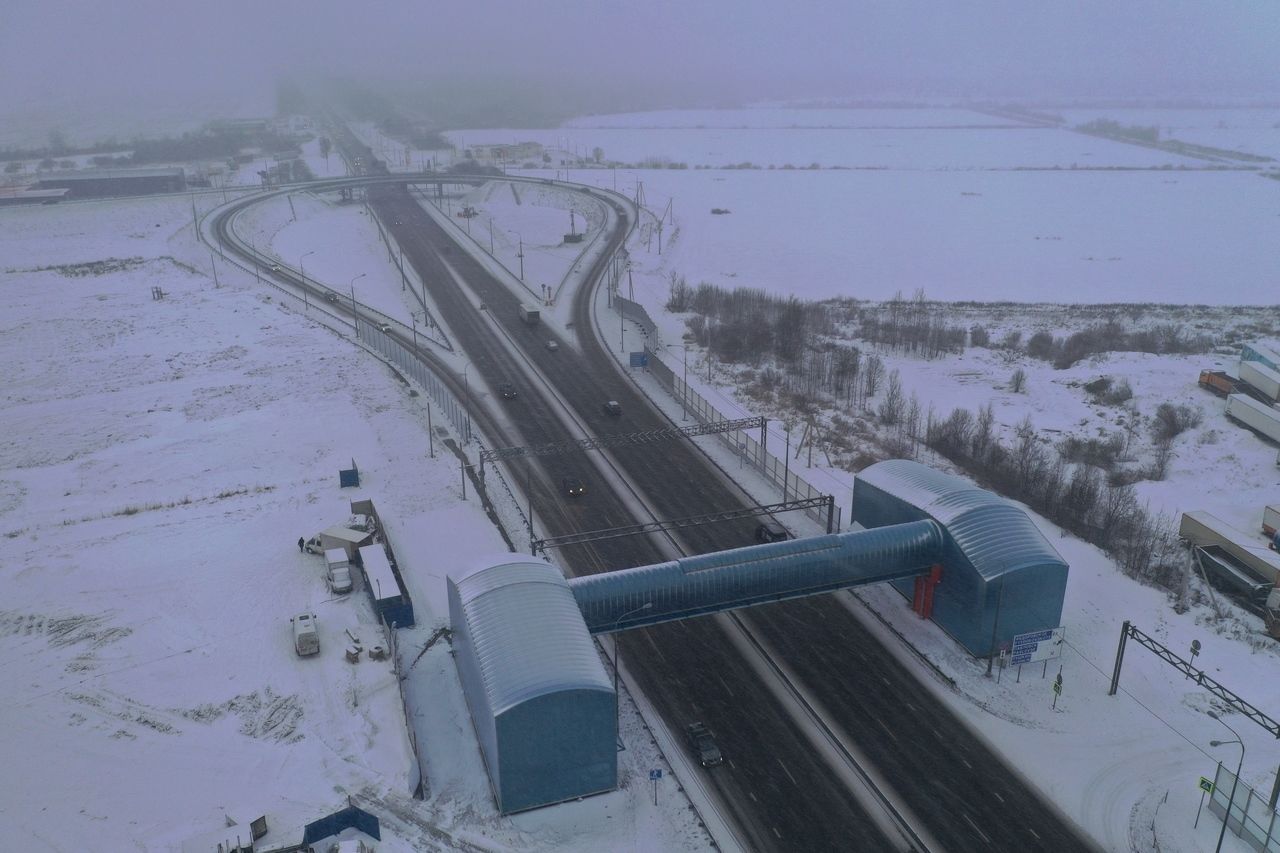 Как сообщает пресс-служба ФКУ Упрдор «Северо-Запад», на участке построена развязка с путепроводом по типу «неполный клеверный лист», разворотная петля с путепроводом над проезжей частью основного хода и новый надземный пешеходный переход. Общая протяженность новых съездов и разворотной петли составляет 5,5 километра.