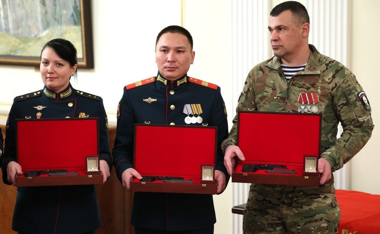 Российский лидер встретился с военнослужащими в подмосковной резиденции 1 января. Также бойцам было вручено именное табельное оружие.