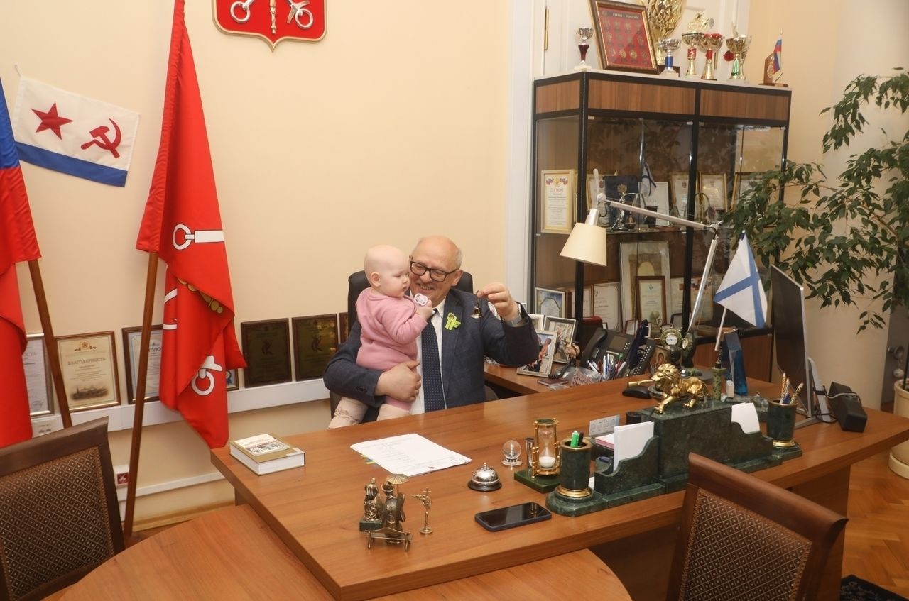 В рабочем кабинете Александра Ржаненкова за столом собрались Алексей Аверьянов, его жена Алена и 9-месячная дочка Варвара.