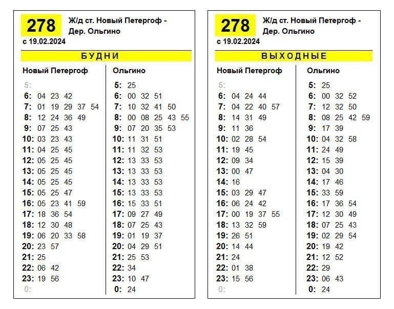 Так, из Нового Петергофа автобус №278 будет отправляться ежедневно в 6:04, из Ольгино – в 5:25.