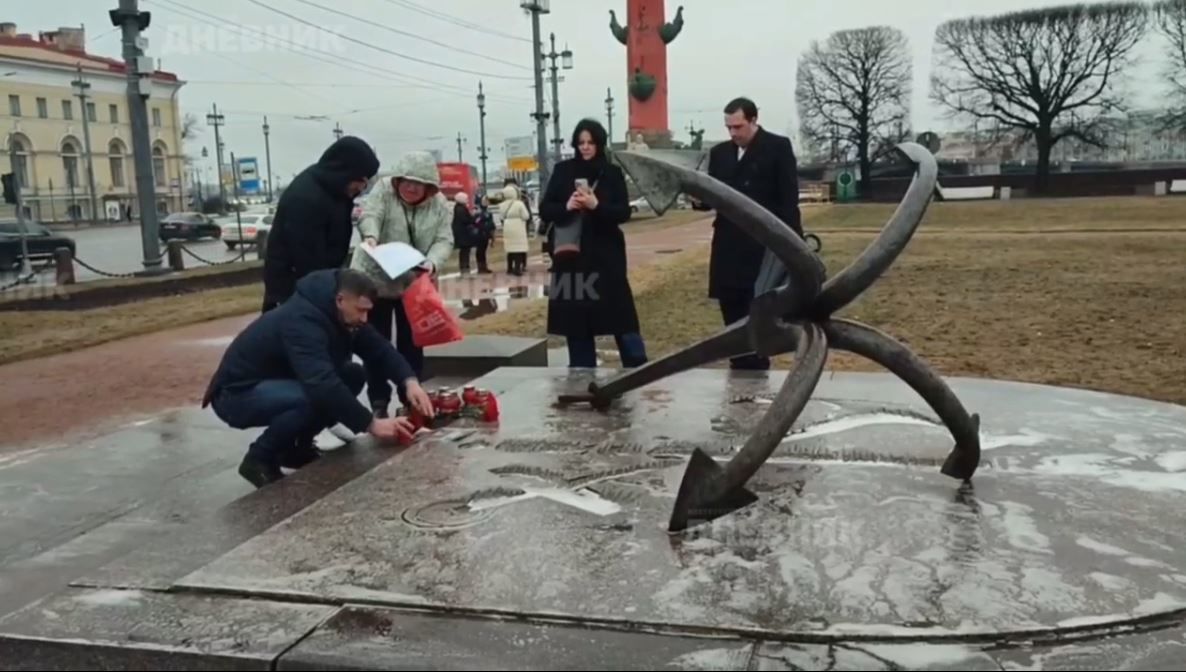 Видео: петербуржцы несут цветы на стрелку Васильевского острова