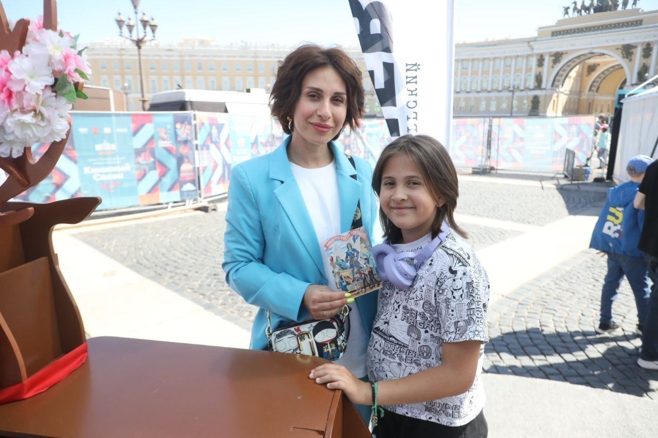 Каждый посетитель традиционного книжного фестиваля может у волонтеров издания «Петербургский дневник» взять открытку, дизайн которой разработан на основе работ участников конкурса, посвященного 225-летию со дня рождения Александра Сергеевича Пушкина, и послать ее родным или друзьям.