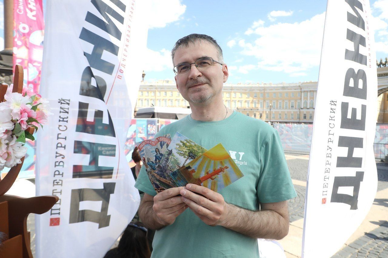 «Отправил послание самому себе в Северодвинск. Написал: «Привет из Петербурга. Вернусь скоро». Когда я приеду, у нас там наверняка опять будет пасмурно и, как всегда, серое небо. Благодаря открытке я буду вспоминать о Дворцовой площади, о Книжном салоне. Это будет такое приятное чувство ностальгии, которое даст мне силы. Это будет и память об отличной погоде», – прокомментировал Артем Попов.