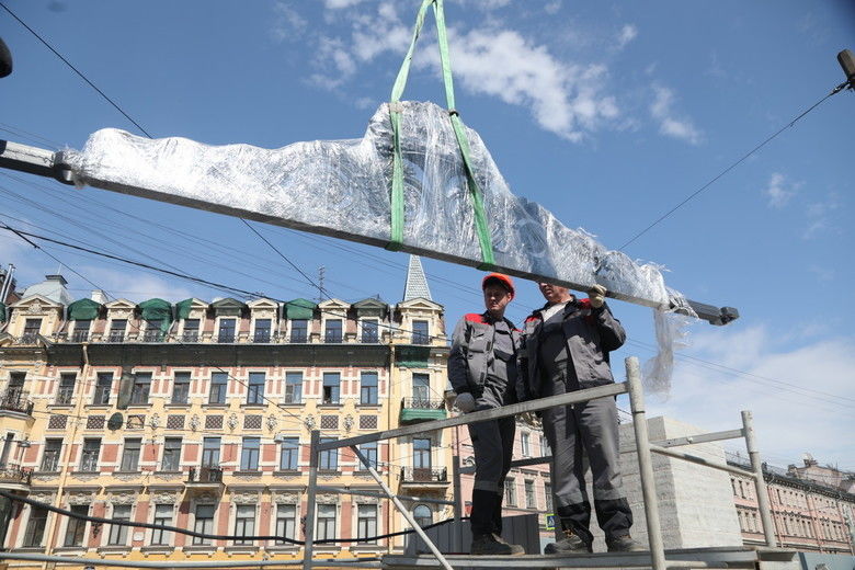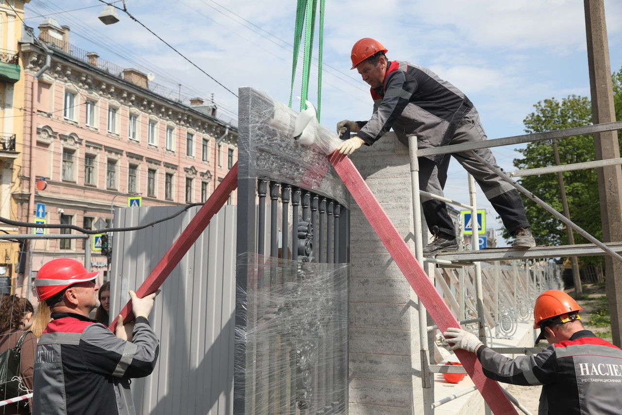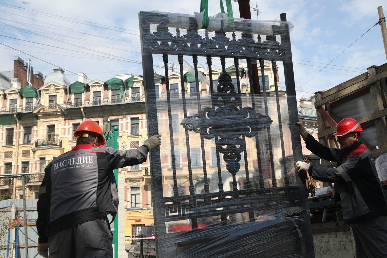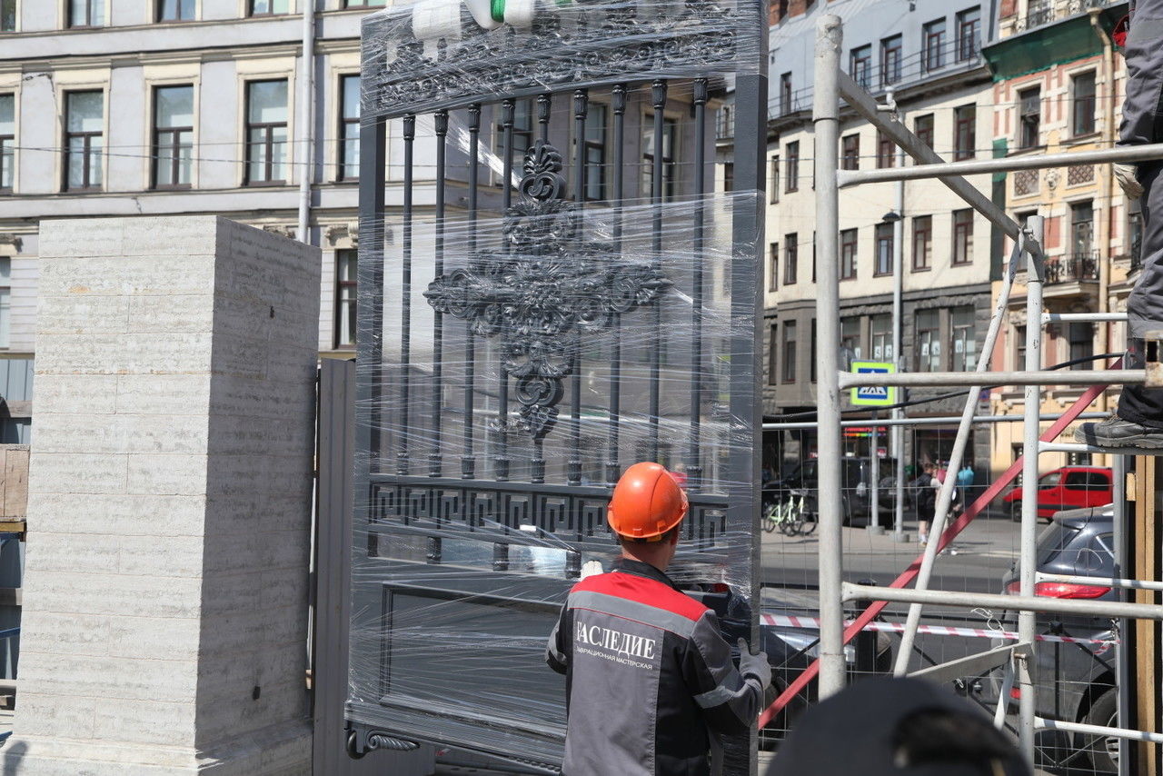 В понедельник, 20 мая, началась установка 146-метровой ограды Юсуповского сада. Ее демонтировали осенью 2022 года, и с тех пор она находилась в мастерской на реставрации. Закончить работы и благоустроить территорию планируется к осени этого года.