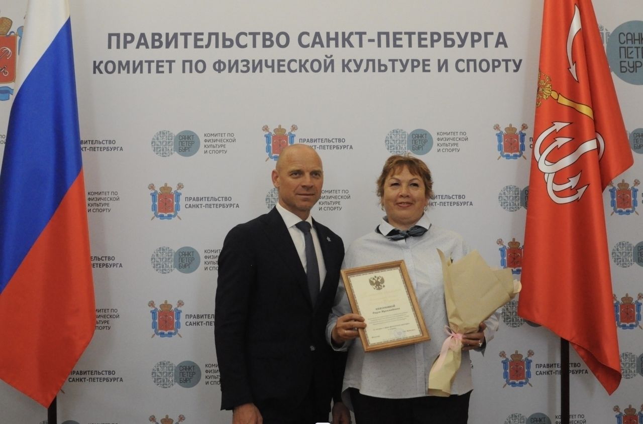 Почетная грамота Министерства спорта РФ вручена заместителю директора по спортивной работе СШОР «Лидер» Фрунзенского района Раузе Некориной.