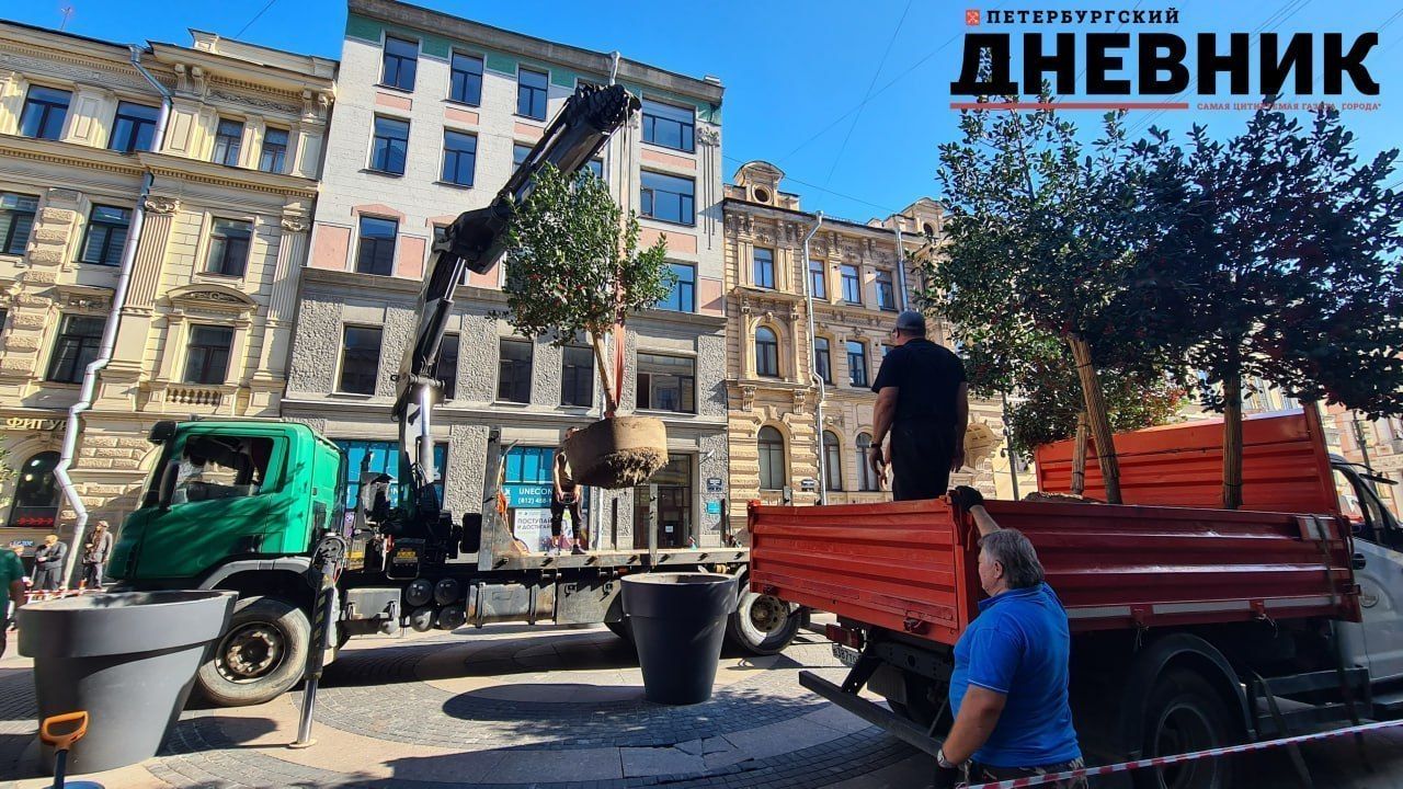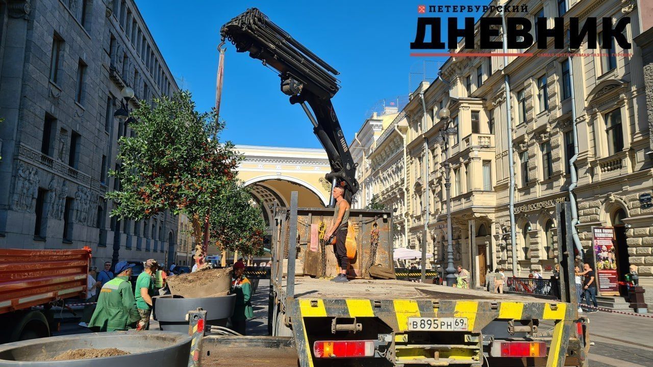 Деревья, высаженные в вазоны на Большой Морской улице, вывозят для последующей высадки в благоприятном месте. Об этом с места событий сообщает корреспондент «Петербургского дневника».