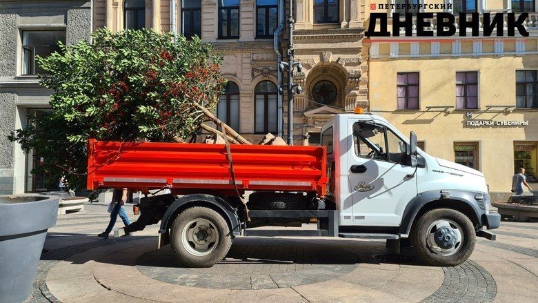 С Большой Морской улицы вывозят высаженные в вазоны деревья