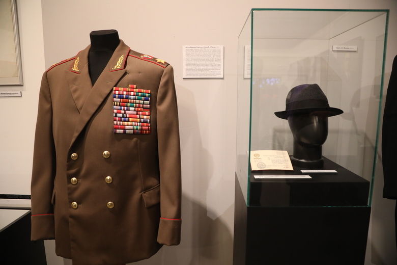 Эпоха Никиты Хрущева представлена на выставке строгим костюмом (ботинок, к сожалению, нет) и тельняшкой. А еще – биноклем. Два последних дара – презент от команды турбоэлектрохода «Балтика». Здесь подарок интересен еще и отсылкой к событиям, в ходе которых генсек совершил плавание на турбоэлектроходе. Рейс на лайнере из Калининграда в Нью-Йорк окрестили «маршрутом дружбы», и его итогом должно было стать потепление отношений между двумя сверхдержавами. Получилось, однако, то, что получилось: успешно добравшись до места, на ХV сессию Генеральной Ассамблеи ООН, Никита Сергеевич исполнил шоу с ботинком, что запустило цепь исторических событий. Команда корабля рассказывала, что Хрущев якобы рассмотрел в бинокль американские подлодки, следующие за кораблем, и был этим не очень-то доволен. А не было бы при нем бинокля – может, и итог поездки получился бы другим.