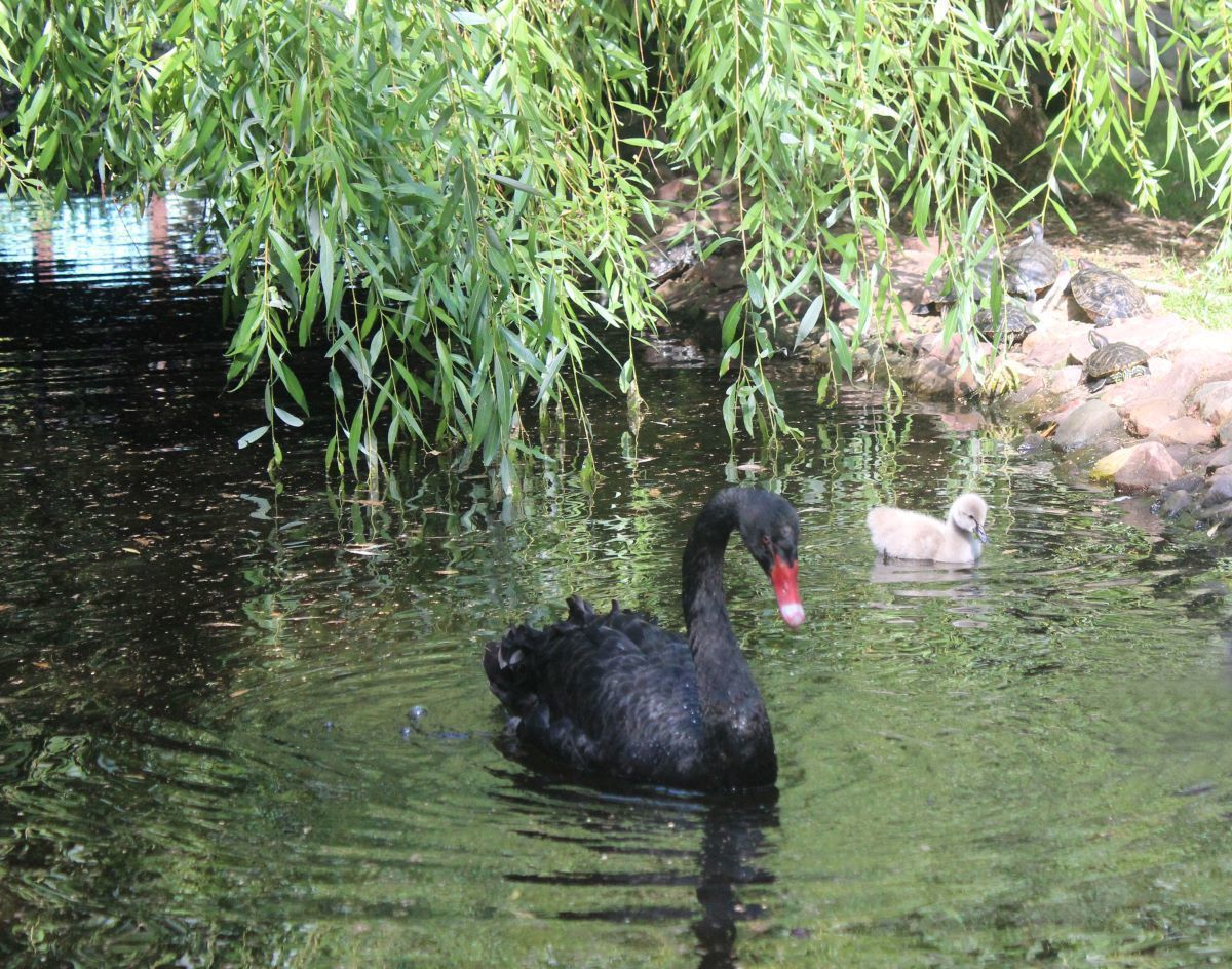 «Наша самка по имени Жемчужина пока еще продолжает сидеть на яйцах и своего гнезда не покидает, поэтому роль главного учителя и сопровождающего малыша во время его первых плаваний на воде взял на себя папа-самец. Заплывы у малыша пока короткие, ведь его тонкий темно-серый пух быстро промокает, поэтому, поплавав на пруду, птенец перебирается на спинку к папе и любуется водными просторами, уже находясь под крылом Брюля», – рассказал генеральный директор зоопарка Владимир Герасичкин.