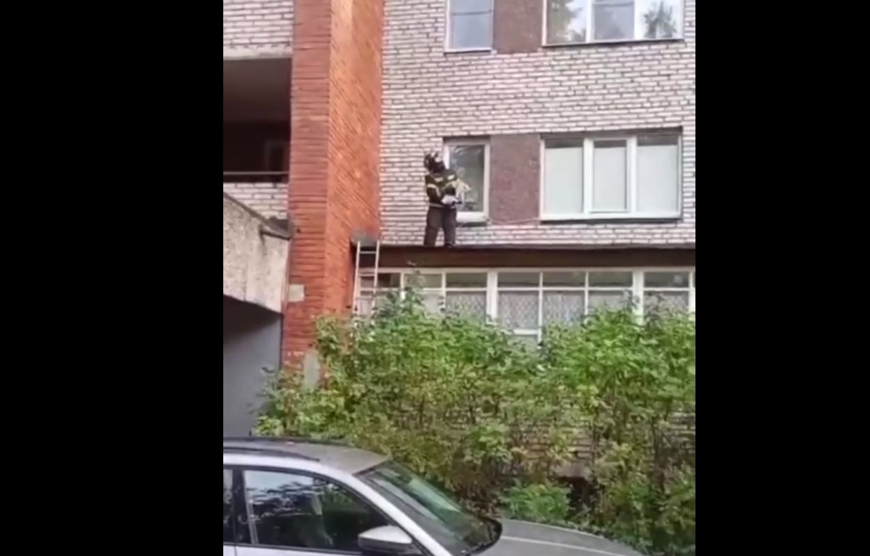 Операция по спасению кота прошла в Сосновом Бору. Животное свалилось на крышу балкона и не могло выбраться самостоятельно.