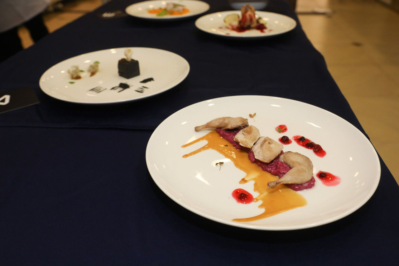 На кулинарный поединок Константина Ивлева и Рената Агзамова Антон Оськин принес лосось татаки с кабачками.