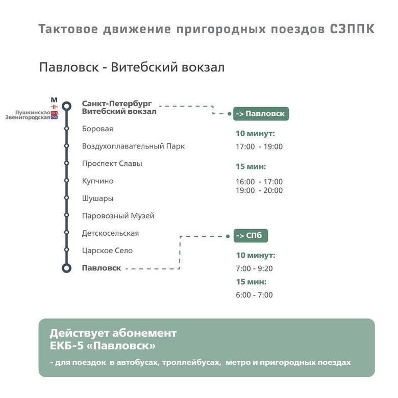 Ежедневно жители Петербурга совершают поездки по четырем тактовым маршрутам на пригородных направлениях. Для их удобства созданы комфортные варианты движения городского транспорта и электричек с интервалами от 10 до 30 минут по будням.