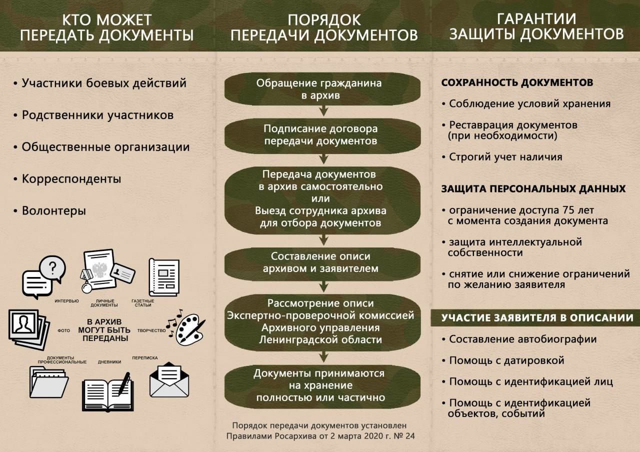 Так, уже сейчас ветераны СВО, сослуживцы и члены семей героев могут передать материалы в архив. Для удобства участников создали специальную памятку. В ней говорится, что документы могут передать участники боевых действий и их родственники, волонтеры, корреспонденты и общественные организации. Также говорится о том, как соблюдается защита персональных данных и каковы правила сохранности документов.