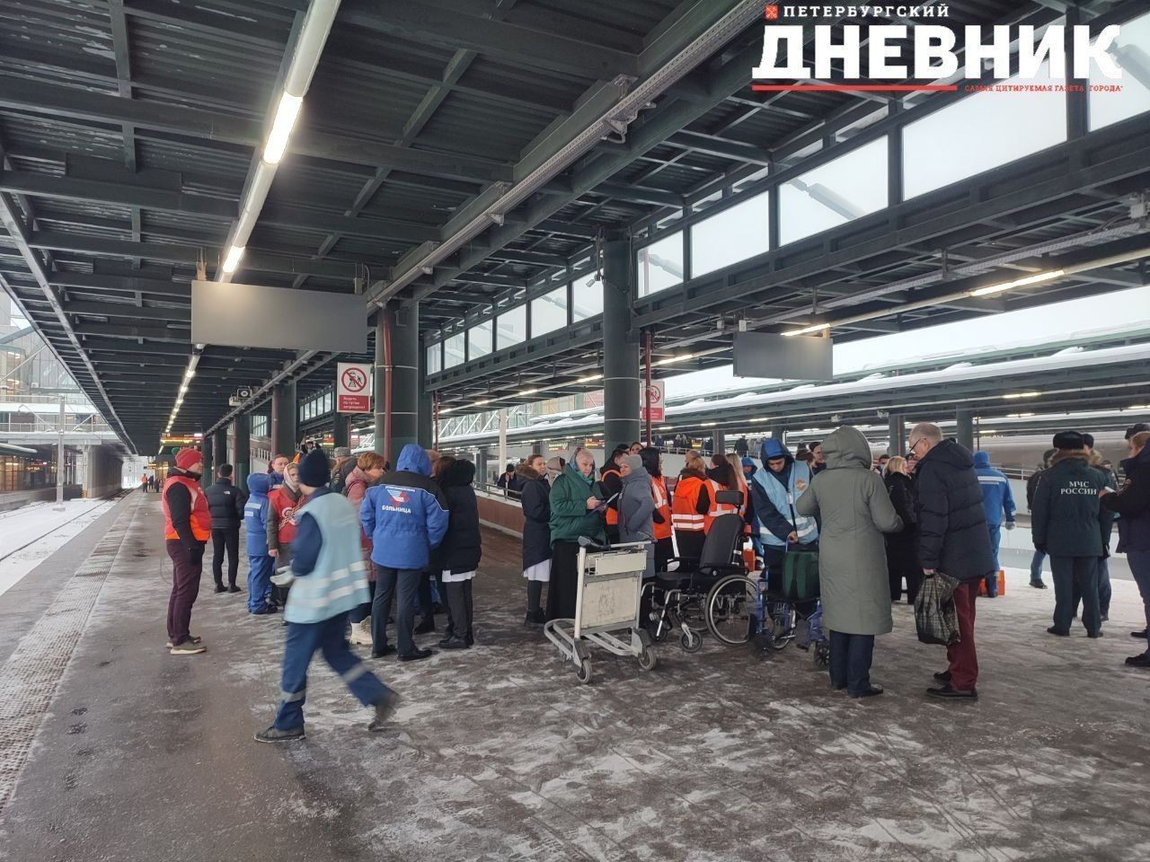 На Ладожском вокзале службы готовятся к прибытию поезда Сегежа – Санкт-Петербург. Для оказания помощи на месте уже находятся сотрудники МЧС, медики и волонтеры.