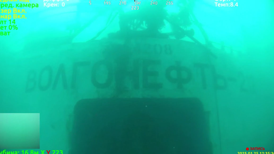 Спасатели МЧС обследовали корму затонувшего танкера «Волгонефть-212»