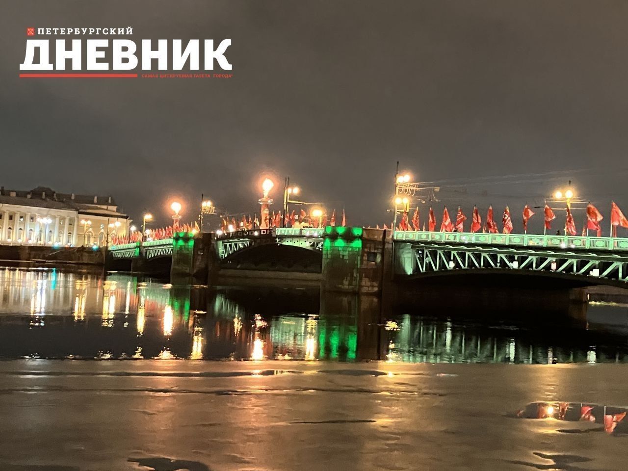 В честь 81-й годовщины освобождения Ленинграда от блокады Дворцовый, Троицкий мосты, а также мост Бетанкура получили подсветку в цветах блокадной ленты. Оливковый и зеленый оттенки будут украшать переправы до 28 января.