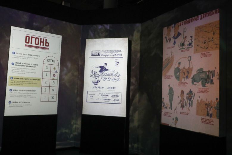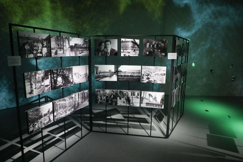 Экспозиция включает в себя четыре локации: путешествие от довоенного Ленинграда до современного Санкт-Петербурга.