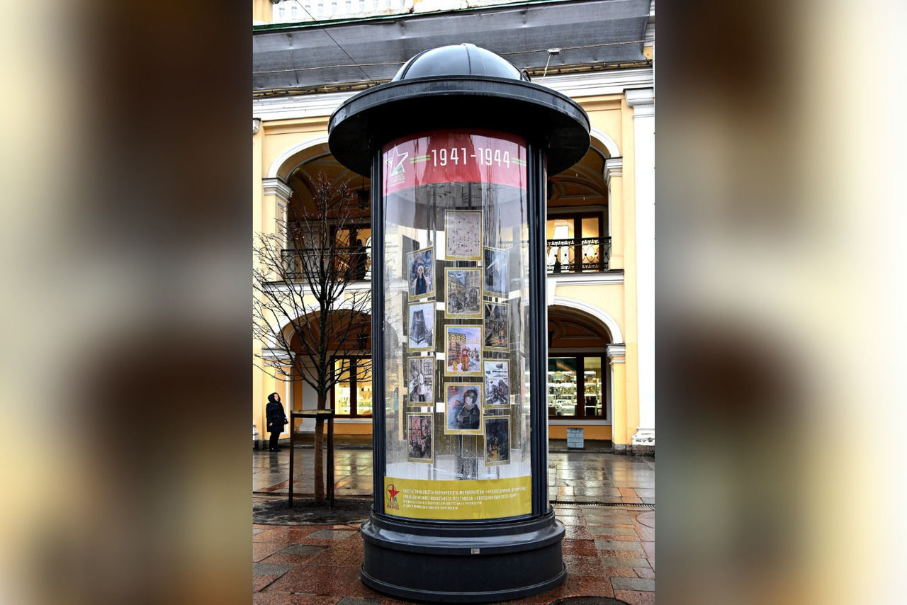 Всего в экспозиционных тумбах насчитывается 51 работа, каждая из которых была отправлена в КГА в рамках конкурса «Праздничный Петербург». Кроме них улицы наполнились и фотографиями, предоставленными Музеем блокады как хроника блокадного города.