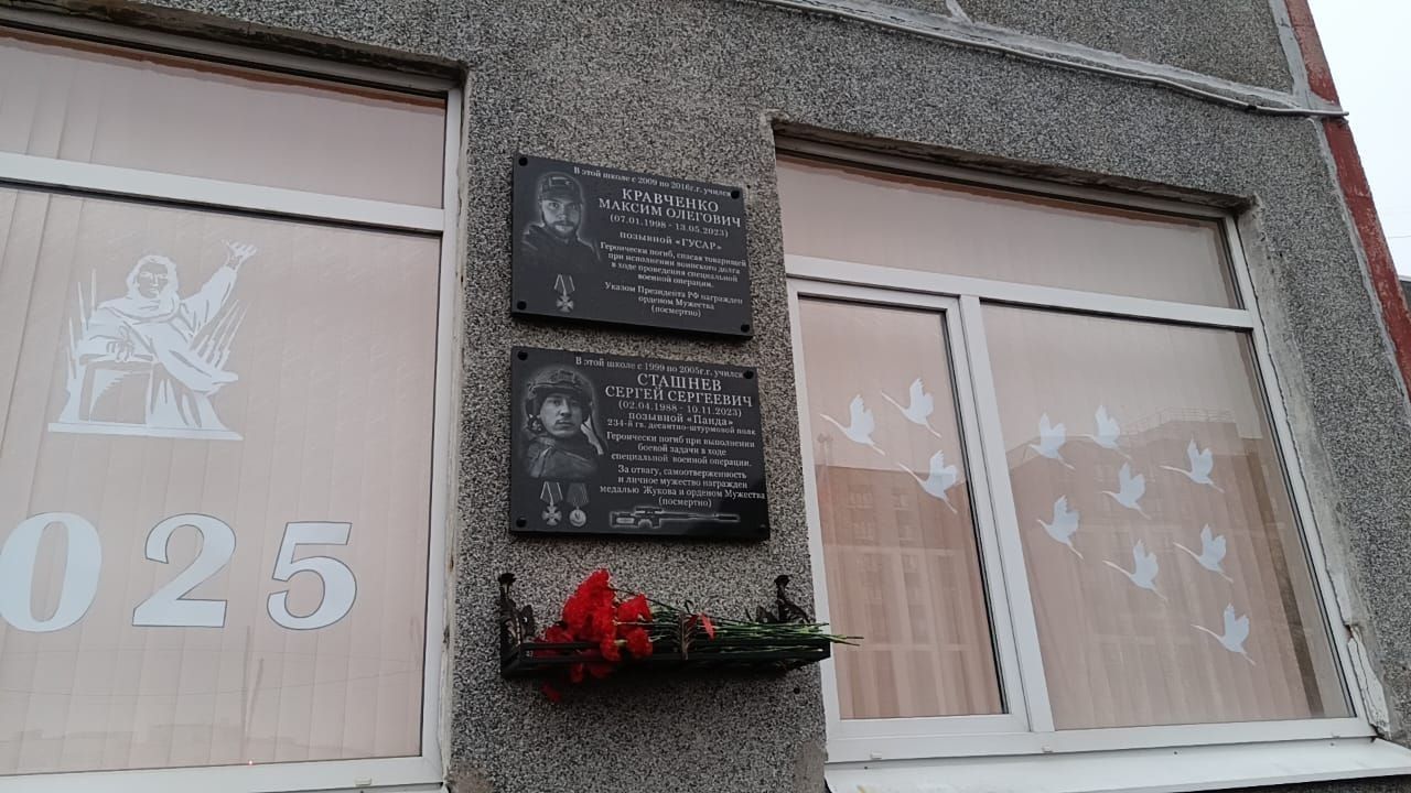 В Гатчинской школе установили мемориал в память о выпускниках, погибших в зоне СВО