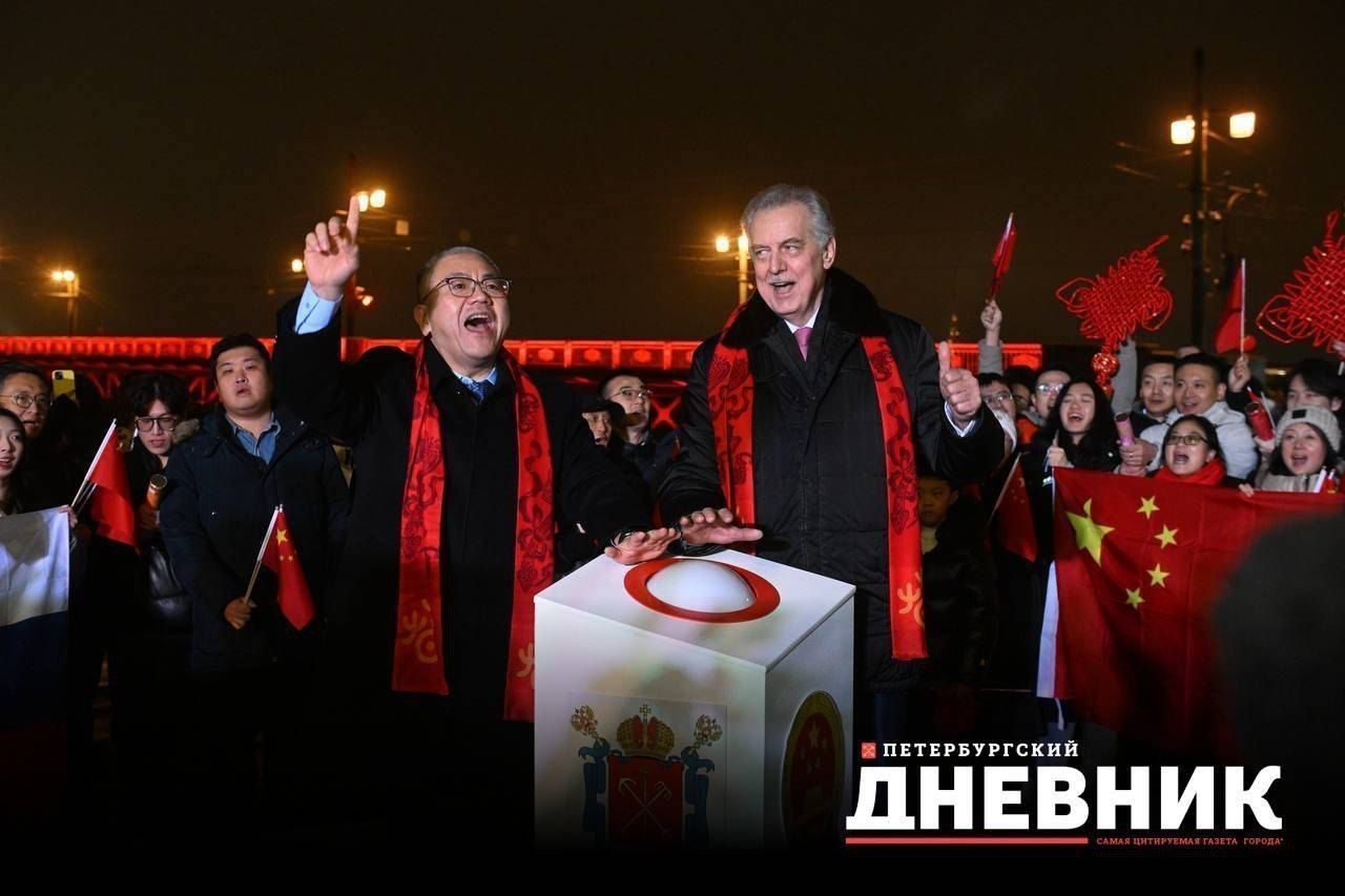На протяжении последних 10 лет в честь празднования включалась красная подсветка одного из мостов Северной столицы. Это стало неофициальным символом Санкт-Петербурга для жителей Китая. Церемония разводки Дворцового моста транслировалась по центральному телевидению КНР.