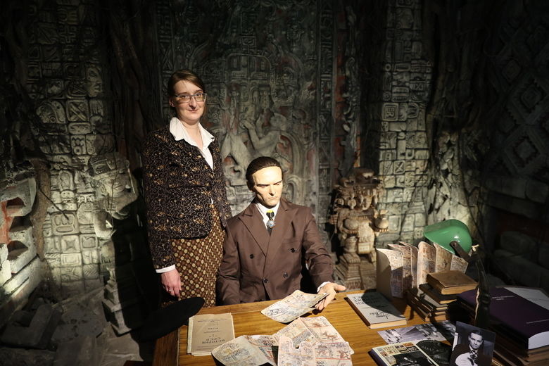 «Мне сразу понравилась идея выставки, поэтому я поддержала проект, – рассказала внучка ученого Юрия Кнорозова Анна Маслова, позируя рядом с фигурой своего известного деда. – Мне понравилось, что ребята серьезно подошли к созданию экспозиции, они консультировались с Кунсткамерой, со мной обсуждали внешний вид моего дедушки. В экспозиции нет его личных вещей, да и кабинет его, конечно, не так выглядел, однако характер деда вся обстановка передает. Например, он всегда выглядел строго и опрятно, носил костюмы. Представить его в каком-нибудь свитере с оленями невозможно. Пока в экспозиции нет кота, но вроде бы он вскоре должен появиться».