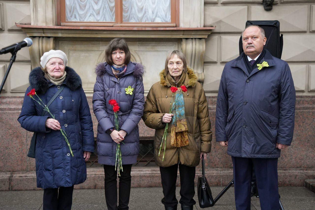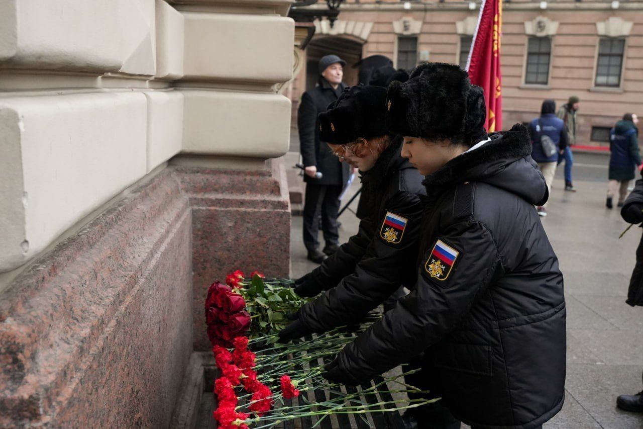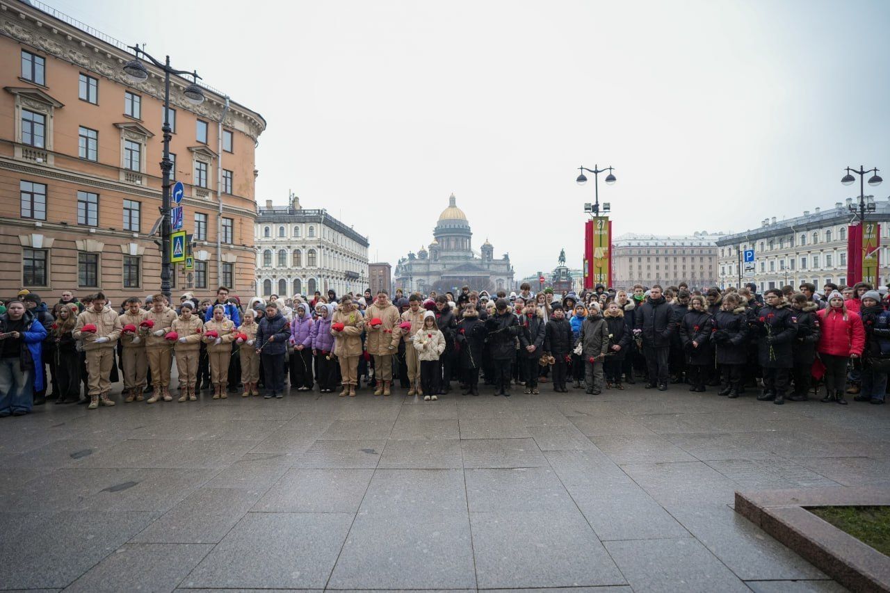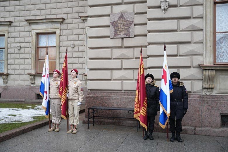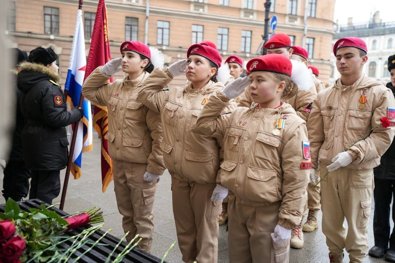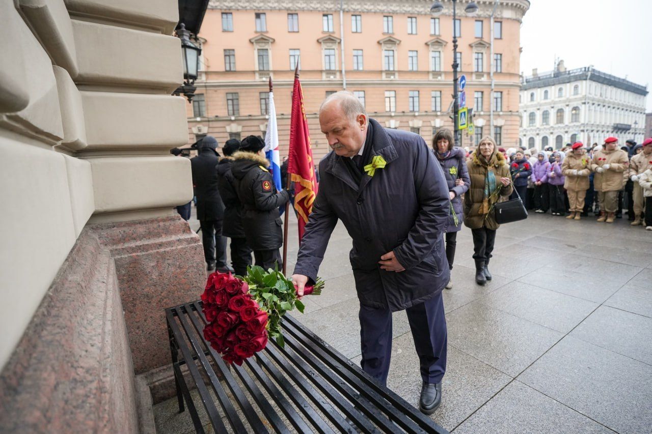 Участники акции «Знамена Победы» возложили цветы к мемориальной доске Ленинградской армии народного ополчения