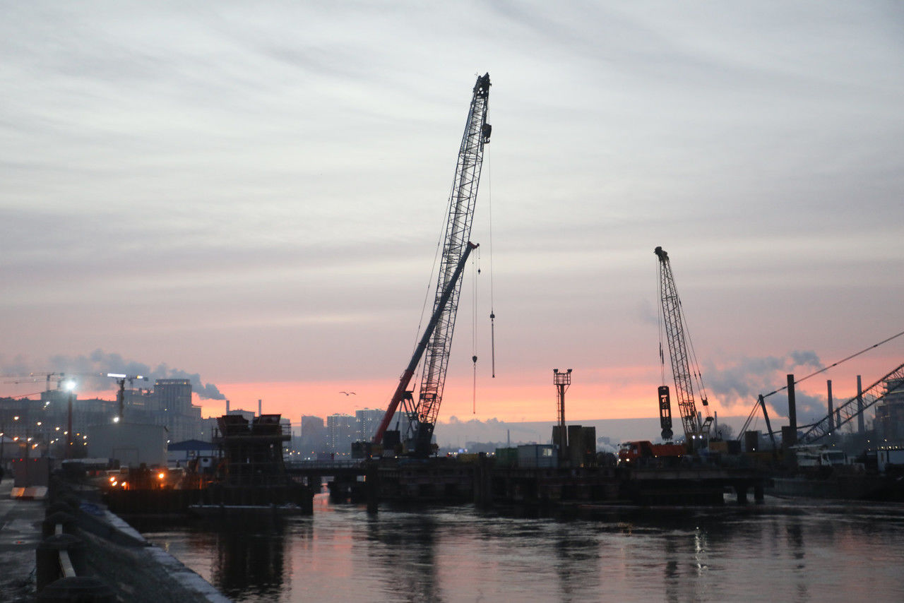 На обоих берегах Невы активно идет работа. На левом берегу уже построены 13 из 21 опоры транспортной развязки с проспектом Обуховской Обороны. На правом берегу, в районе пересечения Дальневосточного проспекта и улицы Коллонтай, специалисты уже начали работы по устройству фундаментов опор путепровода.