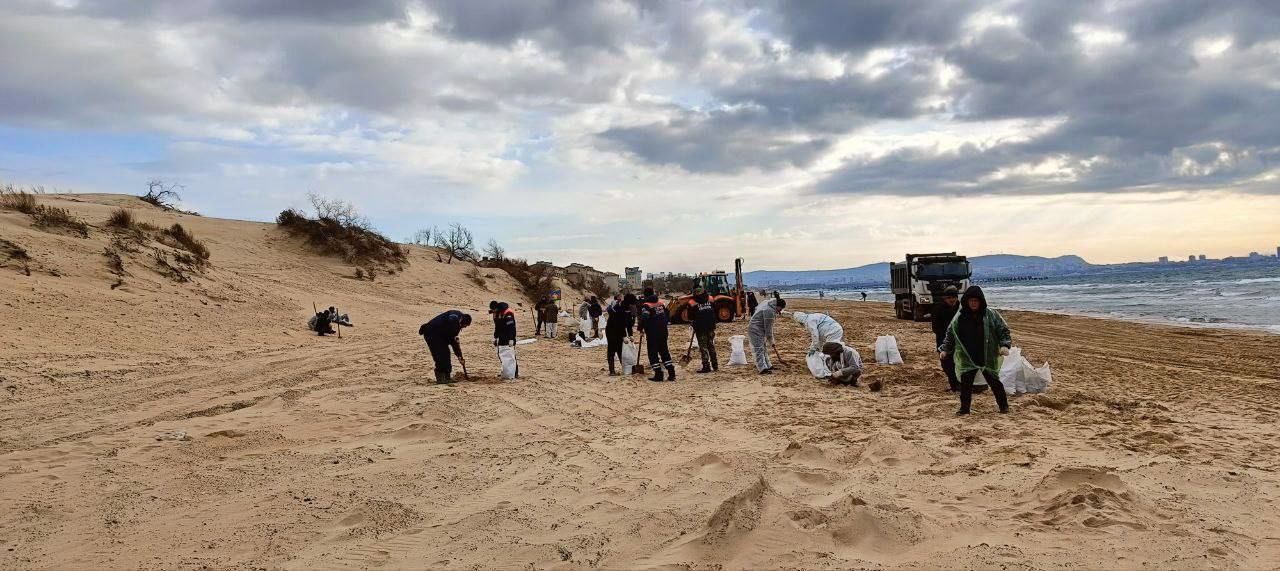 На береговой линии зафиксировали небольшие повторные выбросы фракций мазута. К их ликвидации уже приступила команда местных жителей. В первую очередь они соберут мелкие фракции около воды, затем приступят к «деликатной уборке» – очистке пляжа с помощью просеивающих лопат.