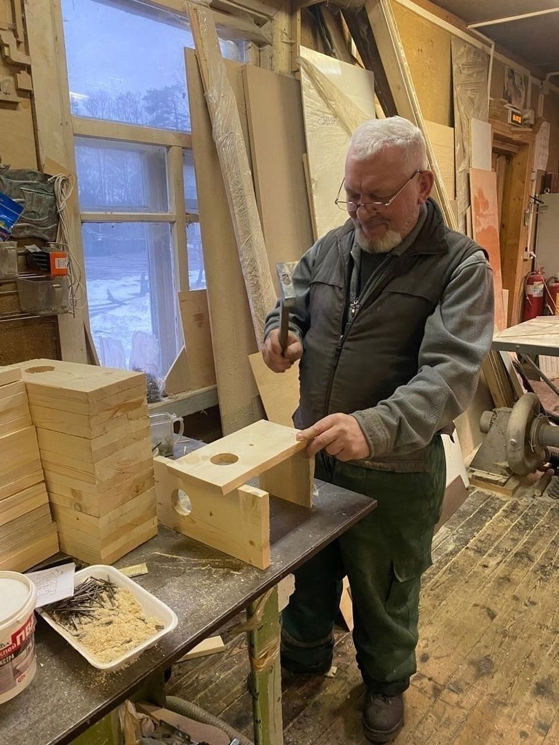 Сотрудник ГКУ «Курортный лесопарк», столяр 5-го разряда цеха деревообработки Иван Ломакин из отходов древесины строит прочные и красивые домики для зимующих птиц. Об этом сообщает Комитет по благоустройству Петербурга.