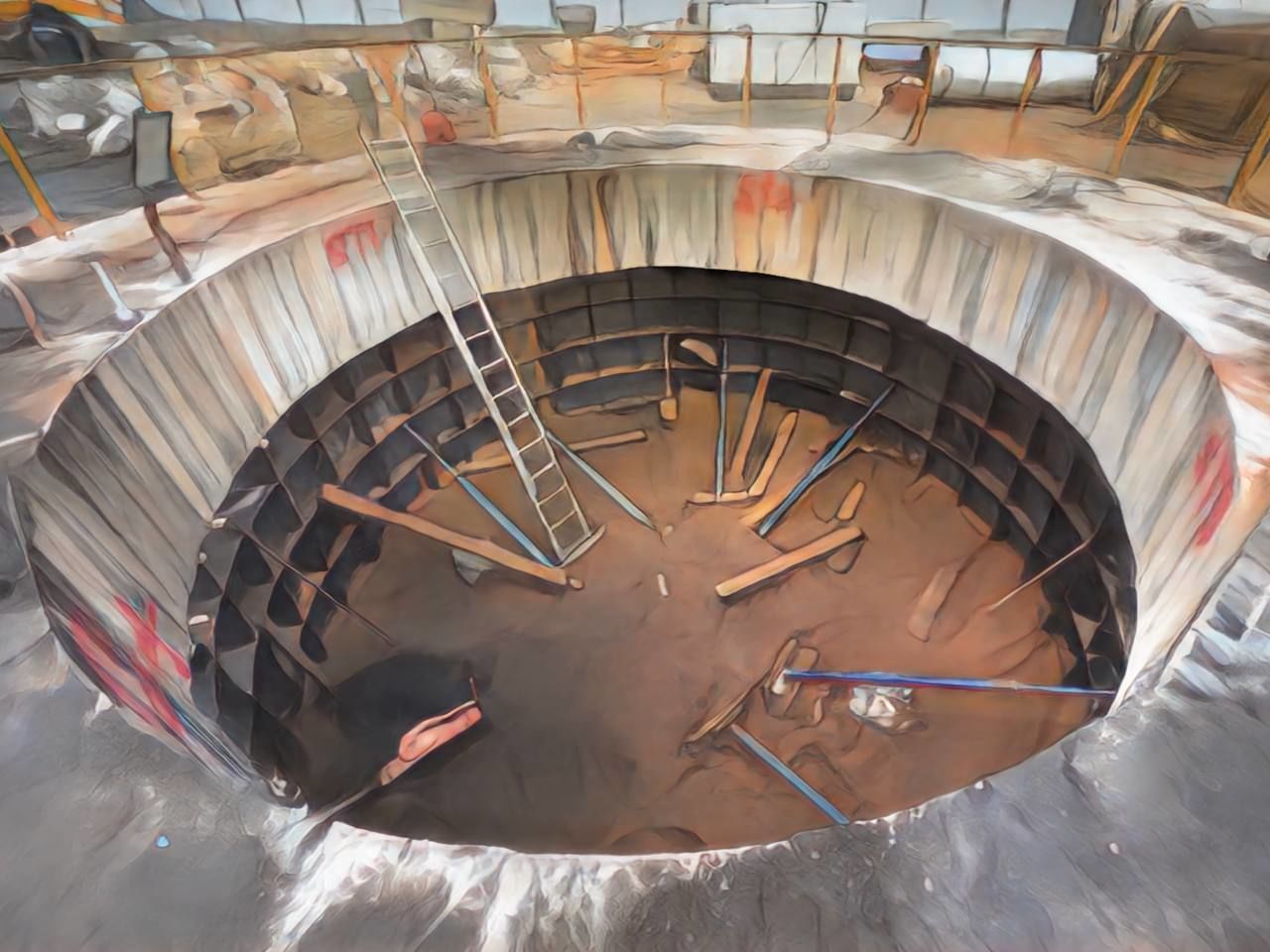 По периметру будущего ствола шахты возвели ограждающую конструкцию на глубину 40 метров. Строители приступили к проходке ствола шахты.