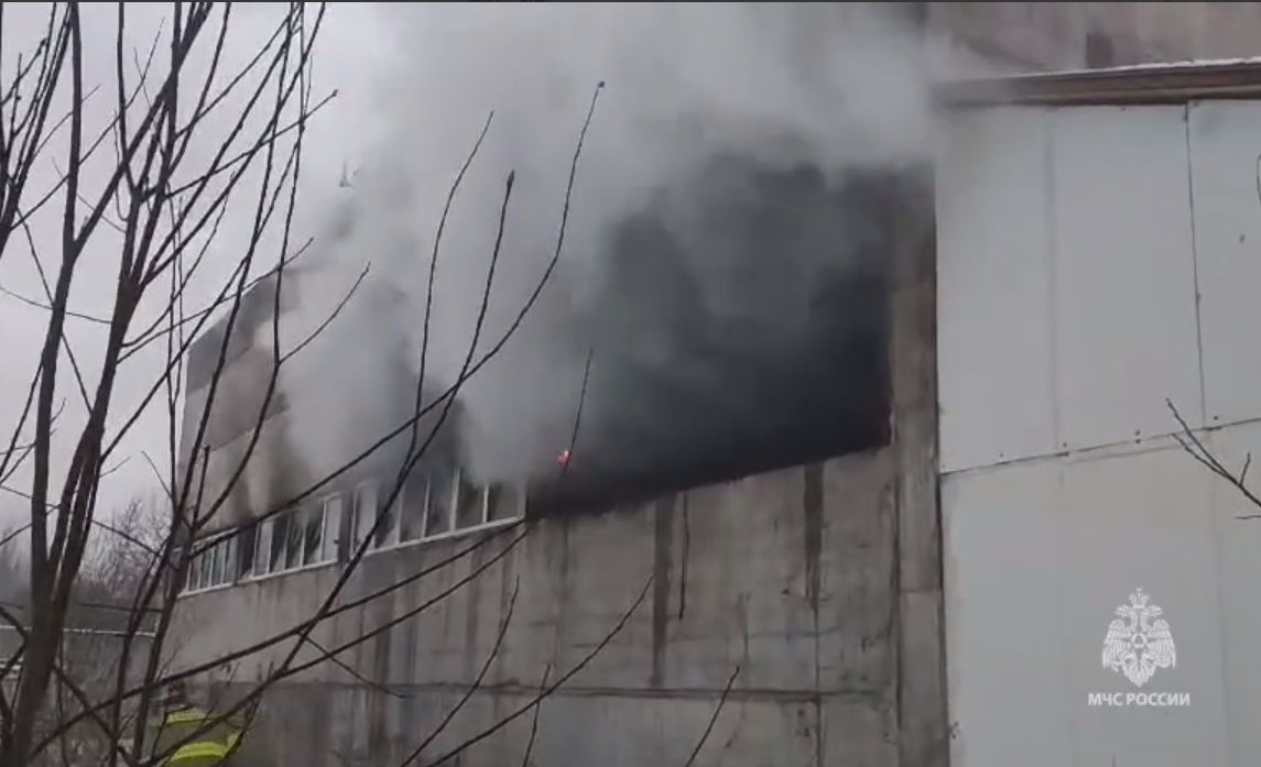 Сорок спасателей тушат пожар в деревообрабатывающем цехе в Кировске