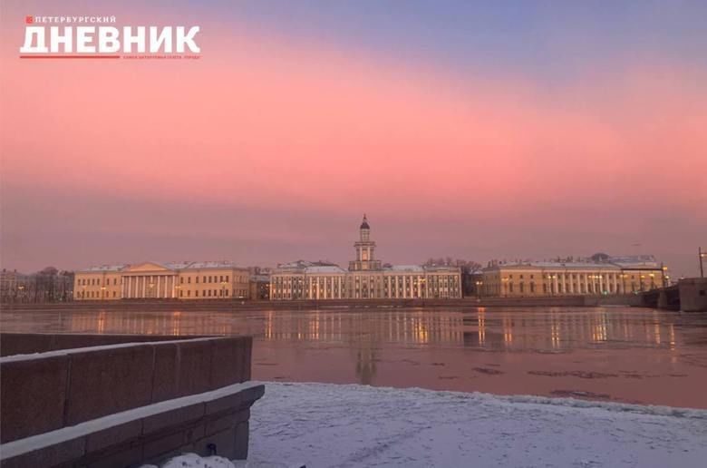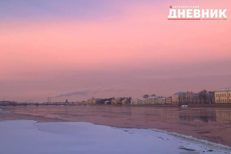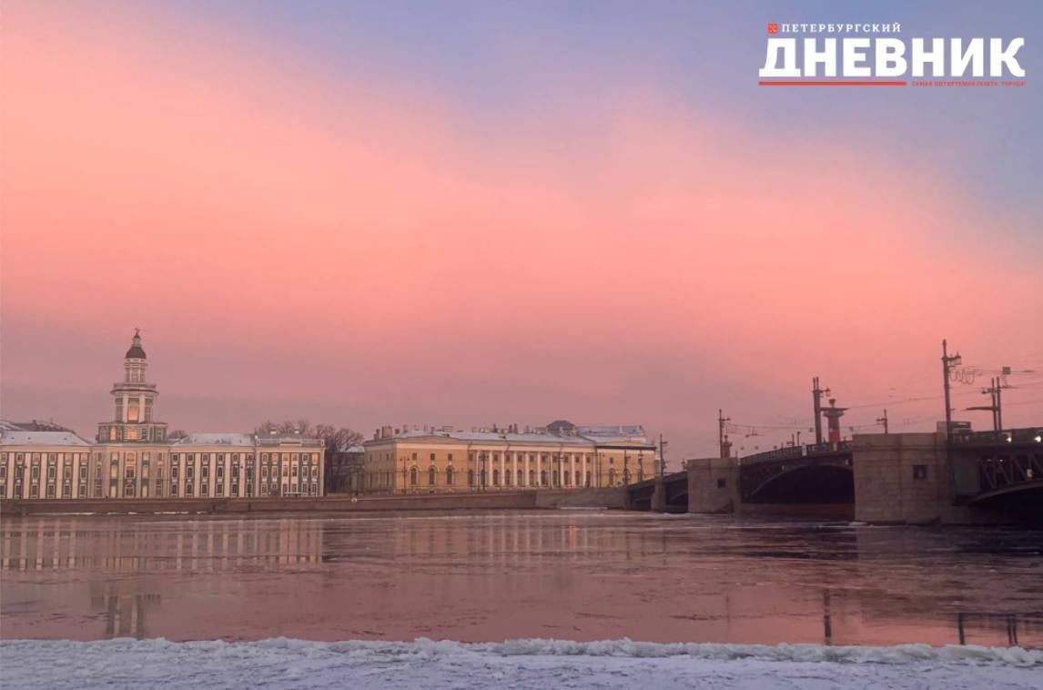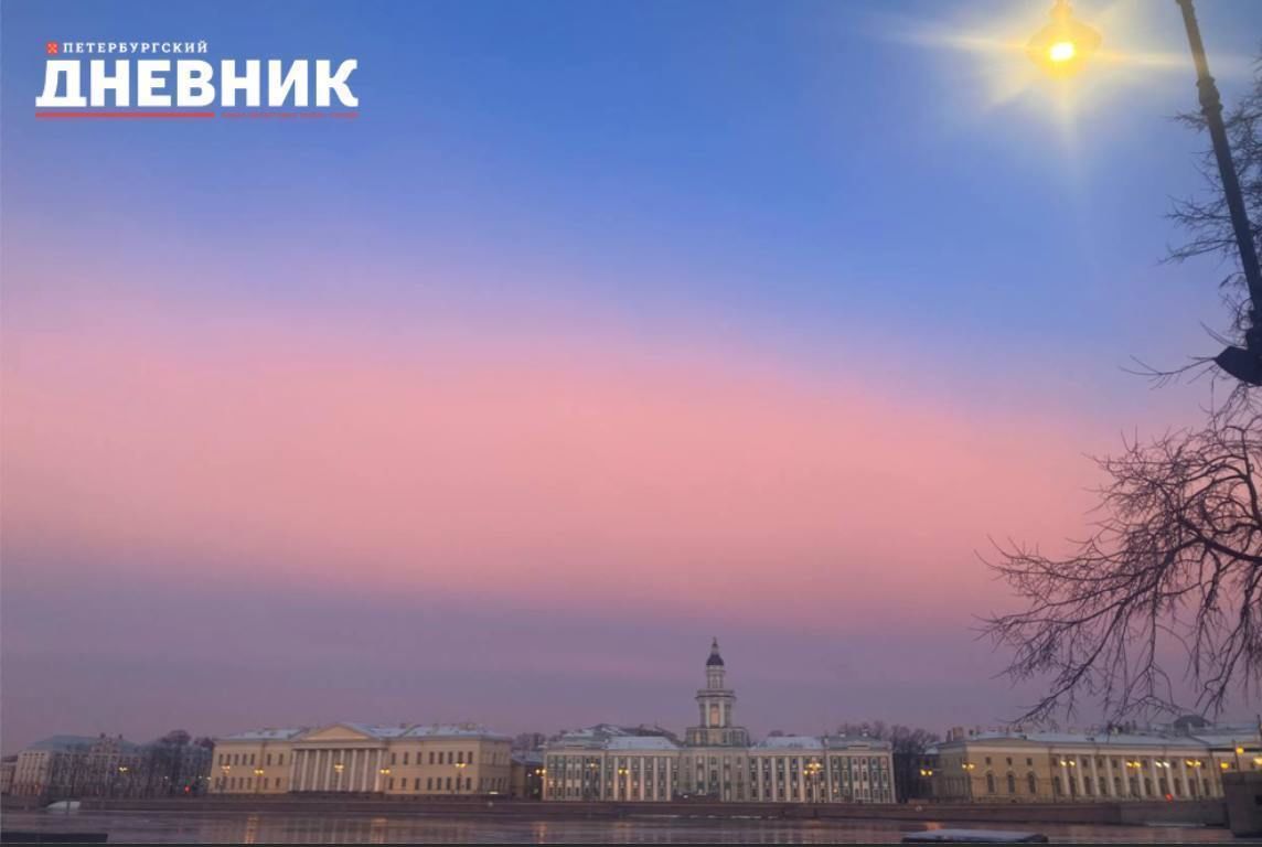Небо Петербурга сегодня утром окрасилось в розовый цвет