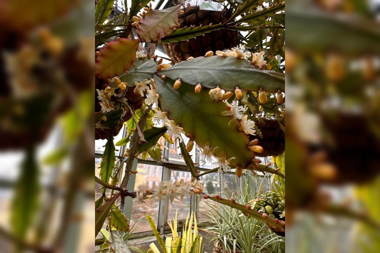 В Ботаническом саду зацвел необычный кактус, который живет на стволах и ветвях деревьев