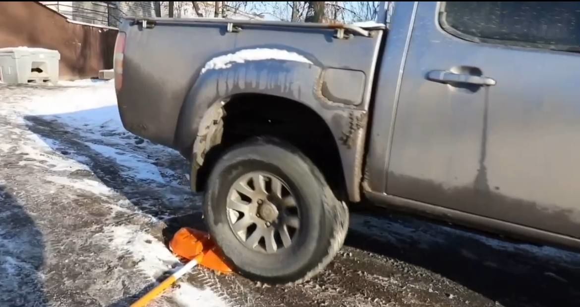 Петербургские дворники показали, как их главное орудие не ломается даже под внедорожником. Речь идет о ярко-оранжевой лопате. Видео с экспериментом опубликовали в телеграм-канале «Комфортный Петербург».